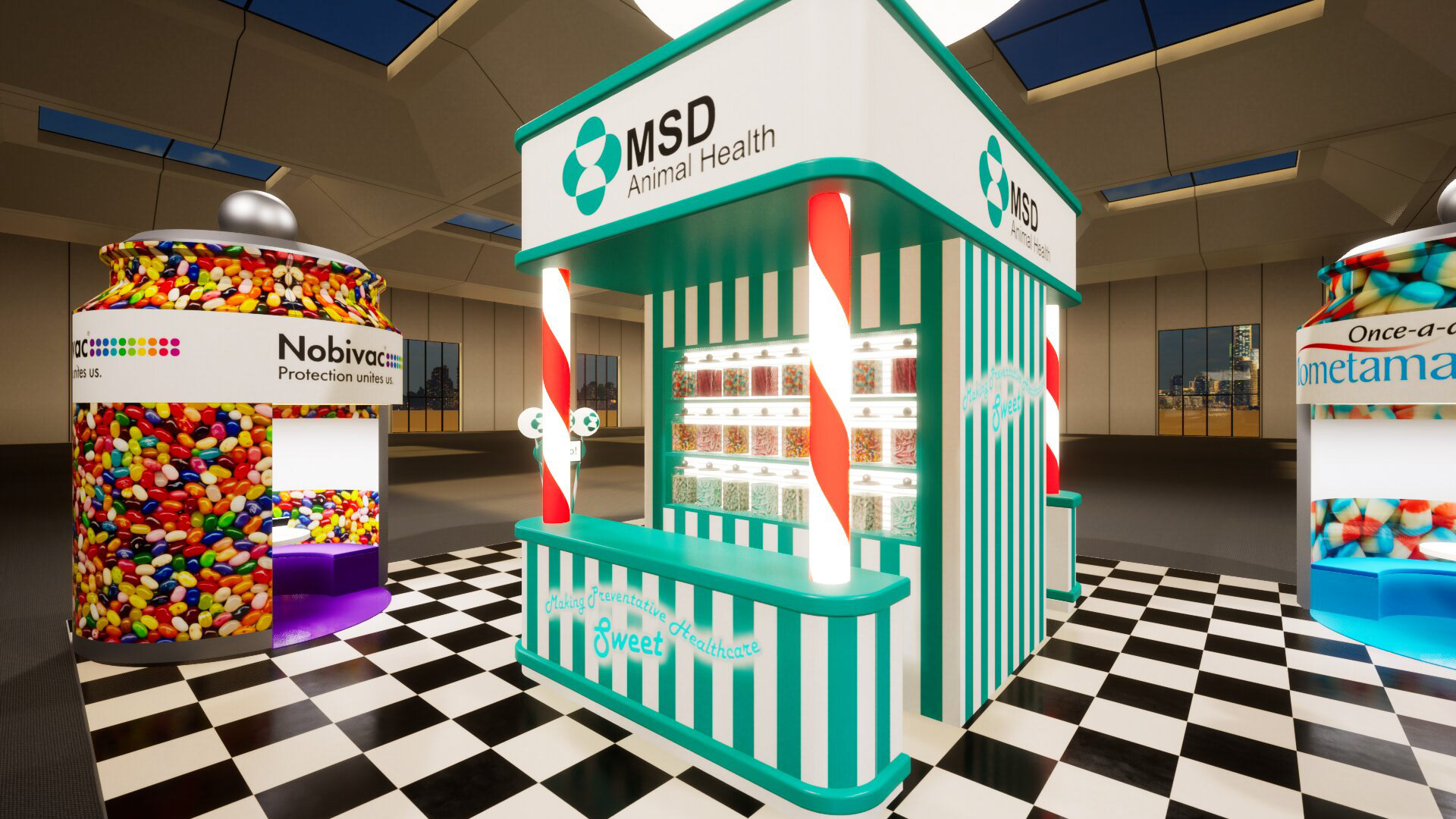 A retro sci fi themed stand for LVS. The following year the brief was for a fantasy candy store.